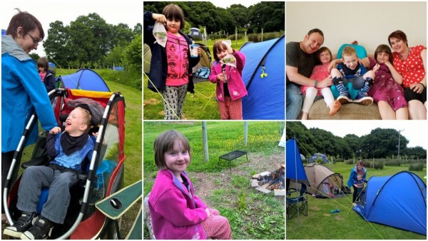 A few months back we took the kids adventure camping. My initial enthusiasm waned a little when I saw the gigantic mound of stuff we needed to take, just for one night: toilet chair, huge off-road special needs trailer buggy, changing mat, endless changes of clothes, huge bag of meds, pads and wipes plus all the general camping stuff. I tried to stop thinking about the amount of work it was all going to be and after muttering ‘never again’ to my hubby several times, we set off for a little campsite not far away from home in Sussex.